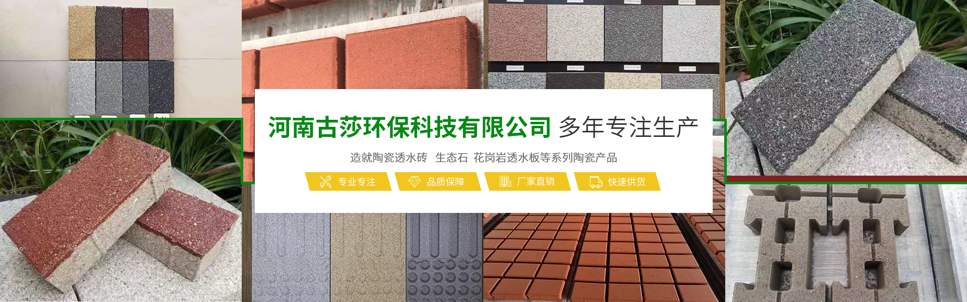河南古莎環??萍加邢薰究傋溆诮煌屑~城市鄭州,是一家具備研發、生產、銷售能力為一體的綜合性現代化陶瓷企業。本公司專業生產經營生態陶瓷透水磚、生態鋪石、PC仿石材透水磚、PC仿石材景墻磚、普通透水磚、燒結磚等系列產品,完善的研發團隊,完善的生產流水線設備,打造完善的陶瓷企業。古莎環??萍棘F代化陶瓷企業是美化城市,改善生活環境質量的生態環保產品,可廣泛應用于公共建筑廣場、城市道路、公園、藝術景觀、廊道、房地產、別墅住宅小區、地鐵口、車站、高速公路服務區等。古莎環??萍荚谠刑沾善髽I基礎上,另拓展園林綠化、市政施工、瀝青包工包料施工、公路維修等業務板塊,專業培訓了一些園林綠化、市政施工技術人員,并有多年的施工養護經驗以及建筑工程經驗。保證市政工程施工質量以及園林綠化后期養護規范化、專業化。古莎環??萍妓裱钠髽I與品牌發展思路,是奠定在品質與產品應用之上。環保理念由我們共同倡導,理性思考,以推進步,感性溝通,以共建優越。古莎環保科技與大家真誠合作,攜手共進,為助力海綿城市建設,建筑高品質的綠色城市生活貢獻一份力量!
